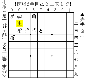 以下、△7一同玉 ▲7二金 で詰むので、▲8四桂 は△同歩(下図)と取るしかありません。